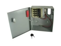 Zasilacz impulsowy w metalowej obudowie zamykanej na kluczyk.
