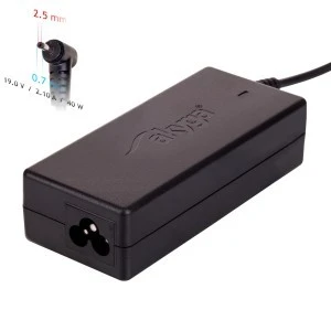 Akyga® AK-ND-23 to zasilacz sieciowy dedykowany do notebooków zasilanych prądem o parametrach 19V/2.1A, o mocy 40W oraz z wtyczką 2.5*0.7 mm. Przewód zasilacza posiada filtr ferrytowy, ograniczający zakłócenia pochodzących z sieci.