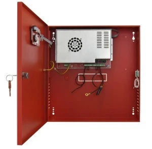 Zasilanie 230 V AC Wyjście zasilania 10 A / 27.6 V DC / 284 W - dla pracy chwilowej – Imax b (5min) 9.2 A / 27.6 V DC - dla pracy ciągłej – Imax a Zgodność z normami Norma pożarowa EN54-4 Norma oddymiania i wentylacji EN12101-10 Certyfikat stałości właściwości użytkowych CNBOP-PIB Nr 1438-CPR-0628 Świadectwo dopuszczenia CNBOP-PIB Nr 5222/2024 Prąd ładowania akumulatora 0.8A Rekomendowany akumulator 2 x 17Ah Pobór prądu przez układy zasilacza 97mA max. Sprawność 88% Wymiary 385 x 402 x 88 [+/-2 mm] dystans od podłoża: 8 mm Zabezpieczenia SCP, OLP, OVP, UVP, tamper – otwarcie obudowy Wyjścia techniczne typu przekaźnikowego EPS – awaria sieci AC ALARM – awaria zbiorcza Wejścia techniczne EXTi – awaria zewnętrzna Zamykanie zamek (1xMR027, ten sam kod) Montaż natynkowy Sygnalizacja wyświetlacz LCD Wykonanie blacha DC01, 1mm, RAL3001 (czerwony), metalowa Stopień ochrony EN60529 IP 30