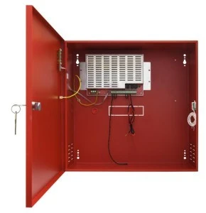 Nazwa: EN54C 27,6V/5A/2×40Ah zasilacz do systemów przeciwpożarowych Zasilanie 230 V AC Wyjście zasilania 5 A / 27.6 V DC / 142 W - dla pracy chwilowej – Imax b (5min) 3.2 A / 27.6 V DC - dla pracy ciągłej – Imax a Zgodność z normami Norma pożarowa EN54-4 Norma oddymiania i wentylacji EN12101-10 Certyfikat stałości właściwości użytkowych CNBOP-PIB Nr 1438-CPR-0628 Świadectwo dopuszczenia CNBOP-PIB Nr 5222/2024 Prąd ładowania akumulatora 1.8A Rekomendowany akumulator 2 x 40Ah Pobór prądu przez układy zasilacza 55mA max. Sprawność 87% Wymiary 420 x 407 x 178 [+/-2 mm] dystans od podłoża: 8 mm Zabezpieczenia SCP, OLP, OVP, UVP, tamper – otwarcie obudowy Wyjścia techniczne typu przekaźnikowego EPS – awaria sieci AC ALARM – awaria zbiorcza Wejścia techniczne EXTi – awaria zewnętrzna Zamykanie zamek (1xMR027, ten sam kod) Montaż natynkowy Sygnalizacja sygnalizacja optyczna LED Wykonanie blacha DC01, 1.2mm, RAL3001 (czerwony), metalowa Stopień ochrony EN60529 IP 30
