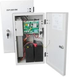 ZUP-230V-400 AKU to wysokiej jakości zasilacz z podtrzymaniem bateryjnym typu ZUP-230V. Zapewnia napięcie gwarantowane 230V z sieci elektroenergetycznej lub po jego zaniku, z inwertera DC/AC 230Vac zasilanego z wewnętrznej 24V baterii akumulatorów. bateria jest niezbędnym elementem pracy zasilacza.