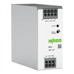 Zasilacze WAGO z serii Base (seria 2587) to 1-fazowe, kompaktowe, wysokowydajne urządzenia do zasilania układów automatyki przemysławej.