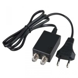 Zasilacz antenowy impulsowy 100 mA. Zasilacz stabilizowany (adapter) ze zwrotnicą F i dwoma konektorami do łatwego podłączenia przewodu koncentrycznego.