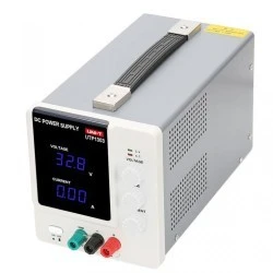 UTP1303 to zasilacz laboratoryjny z płynną regulacją napięcia w zakresie od 0 do 32 V oraz prądu w zakresie od 0 do 3 A. Zasilacz może być wykorzystywany przez hobbystów, elektroników amatorów jak także przy pracach w laboratoriach, serwisach, warsztatach. Wyposażony w dwa wyświetlacze LED siedmio-segmentowe świecące w kolorze niebieskim. Posiada zabezpieczenia przeciążeniowe oraz napięciowe.