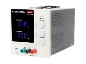 GŁÓWNE PARAMETRY Napięcie wyjściowe: 0 ~ 32 V Stabilizacja napięcia: <= (0,01% + 3 mV) Tętnienia i szumy napięcia : <=1 mVrms Natężenie prądu wyjściowego: 0 ~ 3 A Stabilizacja natężenia prądu: <=(0,1% + 5 mA) Tętnienia i szumy natężenia prądu : <= 3 mVrms Moc maksymalna: 200 W Zabezpieczenie: przeciążeniowe, napięciowe Możliwość regulacji napięcia i natężenia prądu CECHY OGÓLNE Zasilanie: 115 V AC/230 V AC; 47 ~ 63 Hz Wymiary: 145 x 175 x 284 mm Waga: 5 kg Akcesoria: przewód zasilający, przewody połączeniowe z krokodylkami