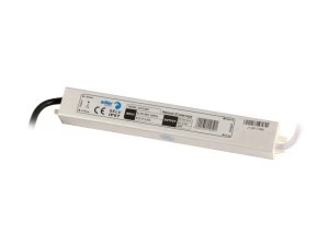 Zasilacz stałonapięciowy AD12-2501(30-12) przeznaczony do zasilania taśm i modułów LED 12 V o mocy do 30 W; konstrukcja z metalową obudową i stopniem ochrony IP67 umożliwia zastosowanie w warunkach narażonych na wilgoć.
