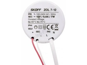 Zasilacz ZOL 7-12 to impulsowy zasilacz transformatorowy o napięciu wyjściowym 12V DC i mocy znamionowej 7W.