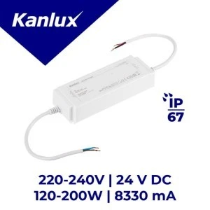 Zasilacz CV, Długość [mm]: 193, Szerokość [mm]: 68, Wysokość [mm]: 37, Typ: Zasilacze, Częstotliwość znamionowa [Hz]: 50, Długość przewodu [m]: 0.19, Klasa ochronności przed porażeniem elektrycznym: II, Kolor: biały, Maksymalna temperatura Ta [°C]: 40, Materiał: tworzywo sztuczne, Miejsce zastosowania: wewnątrz i na zewnątrz, Moc maksymalna [W]: 200, Moc znamionowa [W]: 120-200, Możliwość montażu na powierzchniach normalnie palnych: tak, Możliwość współpracy ze ściemniaczem: nie, Napięcie wejściowe - PRI [V]: 220-240, Napięcie wyjściowe - SEC [V]: 24 DC, Napięcie znamionowe [V]: 220-240 AC, Prąd znamionowy [A]: max 1,3, Rodzaj przyłącza: wolne końce przewodów, Rodzaj zasilacza: stałonapięciowy, Stopień IP: 67, Przekrój przewodu [mm2]: PRI: 1 / SEC: 1,5, Tc [°C]: 85, Zabezpieczenie przeciążeniowe: 1, Zabezpieczenie zwarciowe: 1, Prąd wyjściowy - SEC [mA]: max 8330, λ: 0,9,