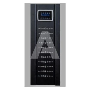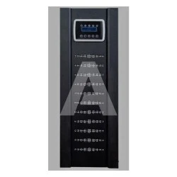 Zasilacz UPS firmy DELTA z serii Premium o mocy 6000 VA/5400 W. Urządzenie posiada 16 akumulatorów o pojemności 9 Ah każdy, które są umieszczone wewnątrz UPSa, zapewniając autonomię pracy przez 5 minut.