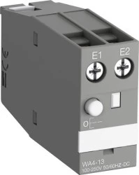 WA4-13 to mechaniczna jednostka blokująca do AF09(Z) ... AF65, AFC09... 38 styczników i przekaźników stycznikowych NF(C)(Z) zapewniających, że stycznik lub przekaźnik stycznikowy pozostaje włączony nawet w przypadku braku lub zaniku napięcia, w zastosowaniach takich jak oszczędzanie energii. Standardowe styczniki można łatwo przekształcić w kompaktowe styczniki zatrzaskowe. Blok WA4 zawiera mechaniczne urządzenie blokujące z odblokowywaniem impulsem elektromagnetycznym (AC lub DC) lub odblokowywaniem ręcznym. Szybki dobór cewki WA4 dzięki nieograniczonemu wyborowi napięć sterujących (np. 100, 110, 115, 120, 125, 127, 208, 220, 230, 240 V 50/60 Hz - DC) zawartych w szerokim zakresie napięć od 100 do 250 V 50/60 Hz - DC. • Rozszerz pomocniczy obwód sterowania, dodając dodatkowe 1-biegunowe bloki styków pomocniczych CAL4 montowane z przodu i 2-biegunowe boczne bloki styków pomocniczych CAL4 montowane z boku • Łatwe projektowanie instalacji z 25% mniejszą głębokością wymaganą do montażu panelowego • Zmniejsz zapasy magazynowe i zwiększ propozycję rozwiązań dzięki 50% mniejszej liczbie wymaganych wariantów w porównaniu z konwencjonalnymi rozwiązaniami.