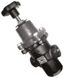 Zawór redukcji ciśnienia. Zawór redukcyjny ciśnienia o bezpośrednim działaniu, przeznaczony do stosowania na parze, sprężonym powietrzu i innych gazach. Niewielkie rozmiary zaworów, specjalnie zaprojektowane mieszki i wbudowany filtr siatkowy sprawiają, że nadaje się on do redukcji ciśnienia pary w punkcie użycia maszyn pralniczych, farbowania, przemysłu spożywczego, sterylizatorów itp. Połączenia są przykręcane żeńskim lub kołnierzowym Instalacja pozioma Niewielkie rozmiary Mieszek zaprojektowany specjalnie z myślą o wysokiej trwałości Śruba regulacyjna z TOP Wbudowany filtr siatkowy Zawór miękki
