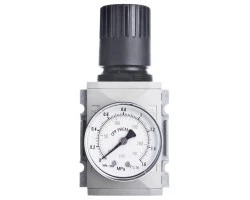 Zawory redukcyjne służą do nastawiania i utrzymywania stałego ciśnienia czynnika roboczego w pneumatycznych układach napędowych i sterujących niezależnie, od zmiany ciśnienia w sieci zasilającej, powyżej cisnienia zredukowanego oraz objętościowego natężenia ciśnienia. Gwint przyłącza : G1/2. Maksymalne ciśnienie wejściowe: 1,6 MPa. Zakres ciśnień wyjściowych: 0,05-1,2 MPa. Zakres temperatur pracy: od 0 do +65°C. Sposób zasilania: przewodowy.