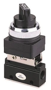 Zawór rozdzielający pneumatyczny ręczny 3/2 G 1/8 NC, monostabilny, powrót sprężyną, dźwignia
