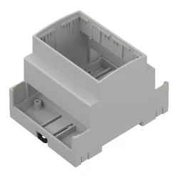 Obudowy modułowe na szynę DIN - są to obudowy dostosowane do montażu na szynach DIN. Występują one w kolorze jasnoszarym. Tworzywo z jakiego je wykonujemy to polistyren, ABS oraz ABS V0 (samogasnący). Istnieje także możliwość zakupu tych obudów z filtrami transparentnymi w kolorze czerwonym zamiast białego panelu górnego.