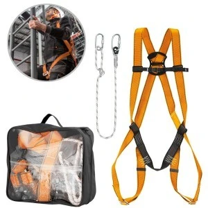 - Zestaw zawiera: szelki bezpieczeństwa, linka bezpieczeństwa regulowana, długość 2m, dwa zatrzaśniki z nakrętką blokującą typu "Screw-Lock"