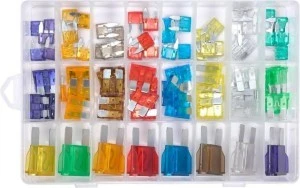 Zawartość zestawu: bezpieczniki x88 (mini: 3A x5, 5A x5, 7.5A x5, 10A x5, 15A x5, 20A x5, 25A x5, 30A x5 standard: 3A x5, 5A x5, 7.5A x5, 10A x5, 15A x5, 20A x5, 25A x5, 30A x5