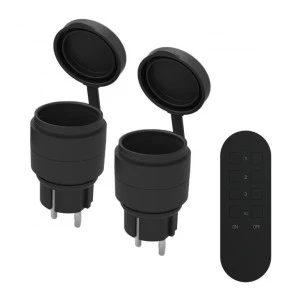 Zestaw zawiera pilot o kompaktowych wymiarach (110x37x10mm), który zapewnia wygodę obsługi, umożliwiając jednokierunkowe sterowanie, a dwa pojedyncze gniazda sieciowe typu francuskiego (2P+Z) są kompatybilne z wieloma urządzeniami. Stopień ochrony IP44 pozwala umieścić gniazdo na zewnątrz budynku, gwarantując jednocześnie niezawodność działania nawet w trudnych warunkach atmosferycznych. Maksymalne obciążenie wynosi 2300W. Wymiary gniazd wynoszą 64x80x50mm każde.