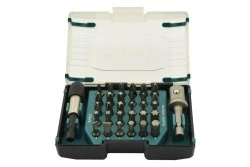 Zestaw Makita składa się z 32 sztuk bitów i nasadek (w tym PH, PZ, T, HEX, PŁASKIE, uchwyt magnetyczny do gniazd 1/2" 50 mm, nasadka 6 mm do złącz śrubowych.