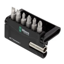 Komplet składający się z 6 grotów oraz uchwytu ułożonych przejrzyście w niewielkiej kasecie Bit-Check.