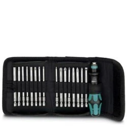 Zestaw wkrętaków bitowych z uchwytem szybkozmiennym, 89 mm długi rowek / krzyż (PZ i PH)/ Hex/Torx®bitowy, 17-częściowy, w torbie na pasek, zawartość: PH 1,2,3 x 89; PZ 1,2,3 x 89; SL 1,5 x 5,5 x 89; TX 10-30 x 89; SW 3,4,5,6 x 89