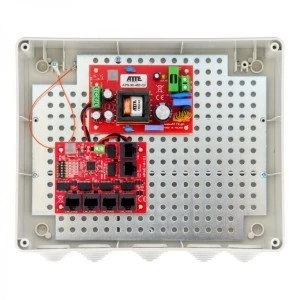 Zestaw do 5 kamer IP, w obudowie zewnętrznej ABOX-L3, zasilacz 96W, switch PoE 6 portowy 10/100Mbps (5xPoE + 1xUplink), bezpieczniki elektroniczne, tryb Long Range, typu IP-5-11-L3