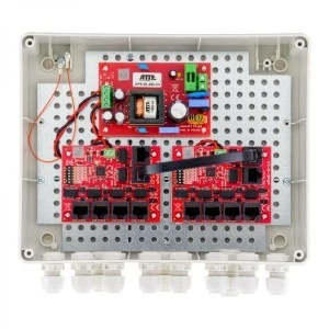 Zestaw do 9 kamer IP, w obudowie zewnętrznej ABOX-L2, zasilacz 96W, switch PoE 10 portowy 10/100Mbps (9xPoE + 1xUplink), bezpieczniki elektroniczne, tryb Long Range, typu IP-9-11-L2