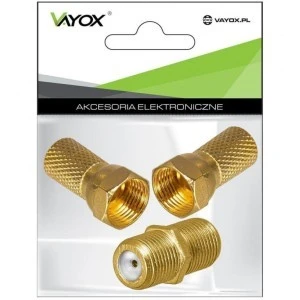 Zestaw do łączenia kabli SAT 2x wtyk F gold + 1x beczka F gold Vayox