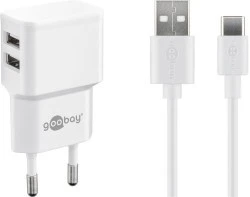 zasilacz z 2 wytk USB i kablem USB Type-C™ 1m (biały)