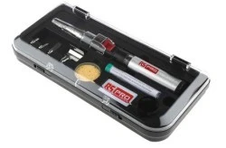 Zestaw lutownicy gazowej RS Pro z automatycznym Zapłonem Ten kompaktowy zestaw do lutowania gazowego RS Pro to wysokiej jakości i wydajny zestaw lutowniczy, idealny do szerokiej gamy zastosowań lutowniczych. Ten poręczny zestaw zawiera wszystko, czego potrzeba do łatwego wykonywania zadań lutowania, w tym wysoce Durable gazowo-lutownicę, różne końcówki, gąbka, wąż do przechowywania lutowanych produktów i wiele innych elementów przechowywanych w poręcznej i Durable walizce. Żelazko jest wyposażone w funkcję automatycznego zapłonu, która zapewnia bezpieczną i łatwą obsługę, oraz funkcję sterowania latarką, która umożliwia precyzyjne lutowanie. Przenośna lutownica gazowa jest zasilana gazem butanowym, co oznacza, że nie są one połączone przewodami, przewodami lub wtyczkami, a poręczne okienko umożliwia szybkie i łatwe sprawdzanie poziomu gazu. Charakterystyka i zalety Automatyczny zapłon ułatwia rozruch i obsługę Zmienna kontrola płomienia zapewniająca precyzyjne użytkowanie Patrz przez okienko wlewu paliwa, aby łatwo sprawdzić poziom gazu Wyłącznik zapłonu bezpieczeństwa jest zgodny z normą CPSC, co zapobiega niewłaściwemu użyciu przez dzieci Kompaktowy zestaw dostarczany w poręcznej walizce Ergonomiczna konstrukcja zapewnia łatwość obsługi Zastosowanie Zestawy lutownic gazowych to doskonały wybór do lutowania w podróży lub w środowiskach, w których nie ma dostępu do wtyczek lub prądu elektrycznego, co pozwala na łatwą pracę bez ograniczenia długości kabla. Wiele lutownic zasilanych gazem jest zgodnych z różnymi końcówkami, co pozwala na łączenie lutu termicznego i stopionego w celu połączenia ze sobą elementów. Zestawy lutownic gazowych idealnie nadają się do szybkiego i minimalnego lutowania, w tym: Naprawy DIY Warsztaty Montaż elektroniczny Odpowiedzi na często zadawane pytania: Co zawiera? Durable akumulatorowa lutownica zasilana gazem Stojak bezpieczeństwa Pokrywa ochronna Głowica lutownicza grot lutowniczy 2,4 mm Podwójna ostra końcówka Dmuchawa gorącego powietrza Końcówka deflektora gorącego powietrza Gąbka do czyszczenia końcówek Rura do przechowywania drutu lutowniczego Jaka jest pojemność paliwa? Ta lutownica ma pojemność paliwa 15 ml. Jaki gaz jest wymagany? Gazem wymaganym do tego lutownicy jest butan. Czy gaz jest dostarczany? Zestaw nie zawiera gazu i należy go nabyć osobno. Czy w zestawie znajduje się drut lutowniczy? Nie, przewód lutowniczy należy zakupić oddzielnie.