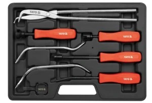 Komplet wyposażony jest w 4 wkrętaki o specjalnych nacięciach umożliwiający zastosowanie przyrządu do wielu modeli hamulców bębnowych