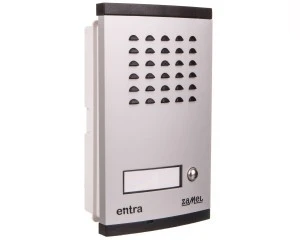 Zestaw domofonowy 2-żyłowy, panel rozmówny wykonany z aluminium z obudową podtynkową, elektroniczny dźwięk wywołania, możliwość regulacji dźwięku wywołania w 3 poziomach