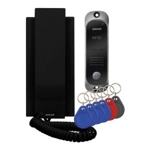 Jednorodzinny zestaw domofonowy AVIOR zawiera niewielkich wymiarów panel zewnętrzny, który idealnie nadaje się do montażu na wąskich słupkach oraz elegancki unifon słuchawkowy pasujący do każdego wnętrza. Zestaw można rozbudować o dodatkowy panel zewnętrzny oraz o dodatkowy unifon, co daje możliwość komunikacji wewnętrznej (interkom) pomiędzy dwoma unifonami oraz zdalną komunikację i obsługę wejścia z różnych miejsc w domu. Intuicyjne i proste podłączenie pozwala na samodzielny montaż. Zestaw umożliwia łatwe otwieranie elektrozaczepu za pomocą breloka zbliżeniowego oraz posiada dodatkowy przycisk do sterowania bramą na unifonie.