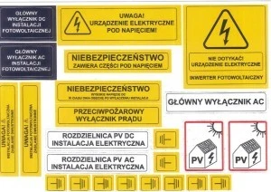 Zestaw etykiet (naklejek) dla instalacji fotowoltaicznej