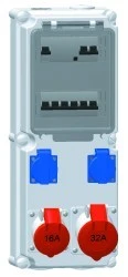 Rozdzielnica stacjonarna stopień ochrony: IP 44 wysokojakościowe tworzywo-obudowa z pokrywą rewizyjną wymiary: 460 x 180 mm / wys. x szer. (wymiar bez zabudowanych elementów) wyposażenie ---------- 2 x gniazdo jednofazowe 16A 230V IP 44 (7130) 1 x CE