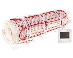 Mata grzejna zawarta w zestawie jest zasilana przewodem dwużyłowym H03VV-F 3G0,75mm2, który został umieszczony na białej, samoprzylepnej siatce ułatwiającej montaż maty. Przewód posiada moc 150 W/m2 oraz moc znamionową, która wynosi 300 W. Mata grzejna wraz z przewodem ma powierzchnię 2 m2, przy czym jej długość ma 4 m, szerokość 0,5 m, a wysokość 4,23 mm.