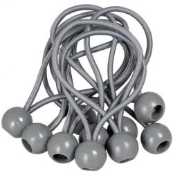 Zestaw gum z kulką10szt.x 15cm BCB-0515GY-B BRADAS Zastosowanie: do plandeki, do basenu, do żagli, do osłon, do banerów, do ścian namiotów Rdzeń gumy wykonany z lateksu Łatwe użycie Duża siła naciągu Wielokrotnego użytku Duży zestaw Gumkę można dociąć i dopasować do własnych potrzeb kolor: SZARY Wymiary: średnica - 5mm długość - od 15cm do 30cm Nr oferty xSale BX11751