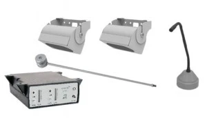 System interkomowy STS-K062 to profesjonalne rozwiązanie do komunikacji przez szybę lub inne bariery, idealne dla stanowisk obsługi klienta w miejscach wymagających dyskretnego montażu. Mikrofon przyklejany na szybę eliminuje konieczność wiercenia, a dwa głośniki sufitowe zapewniają równomierne rozproszenie dźwięku. Wbudowana pętla indukcyjna umożliwia osobom korzystającym z aparatów słuchowych w trybie T-coil odbiór czystego, wzmocnionego dźwięku.