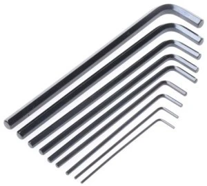 Długie ARM, zestaw w kształcie litery L. Klucze z łbem sześciokątnym z długim ARM i metrycznym, wykonane z chromowanej stali wanadowej, z wykończeniem pokrytym chemicznie ciemnymi
