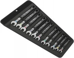 Ponieważ coraz więcej jest sytuacji, w których przestrzeń montażowa jest bardzo ograniczona, potrzebne są narzędzia, za pomocą których użytkownicy będą mogli z powodzeniem pracować również w takich warunkach. Wąskie przestrzenie montażowe wymagają dodatkowych punktów osadzenia dla narzędzi. Czy zatem klucze płaskie można zmodyfikować w taki sposób, aby zwiększyć możliwości osadzenia narzędzia? Połączenie szczęki odchylonej pod kątem 7,5° i podwójnej geometrii sześciokątnej podwaja liczbę punktów osadzenia. Podczas kilkukrotnie powtarzanych obrotów o 180° wokół osi wzdłużnej możliwe jest osadzenia klucza co 15° na nakrętce lub łbie śruby. Klucz Joker 6003 z przemyślaną geometrią szczęk znacznie rozszerza zakres zastosowań w wąskich przestrzeniach. Joker 6003 automatycznie odnajduje odpowiedni punkt podparcia po każdym obrocie. Smukła, a jednocześnie wytrzymała strona oczkowa klucza jest odchylona pod kątem 15° w stosunku do osi narzędzia. Wysokiej jakości powierzchnia zapewnia bardzo dobrą i długotrwałą ochronę antykorozyjną. System wyszukiwania narzędzi Wera "Take it easy": system oznaczenia kolorystycznego kluczy według rozmiaru. Torby Joker nadają się do montażu na ścianie, półce, wózku warsztatowym, a dzięki rzepom są kompatybilne z systemem Wera 2go.