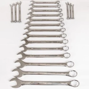 Komplet MN‑51‑280 to profesjonalny zestaw 20 kluczy płasko‑oczkowych ze stali chromowo‑wanadowej, polerowanych i chromowanych, charakteryzujących się wysoką odpornością na korozję oraz zgodnością z normą DIN 3113.