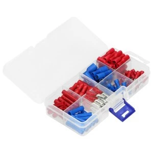 Zestaw końcówek kablowych HOBBY. Dzięki zastosowaniu elementów zestawu zakończenie przewodu zostanie wykonane w sposób pewny i estetyczny. Zestaw umożliwia połączenia w układach niskoprądowych i jest doskonałym rozwiązaniem na szybkie i bezpieczne łączenie w zastosowaniach hobbystycznych.Zawiera 125 elementów: konektory izolowane 1mm²: 20 szt.; konektory izolowane 2,5mm²: 15 szt.; wsuwki izolowane 1mm²: 20 szt.; wsuwki izolowane 2,5 mm²: 15 szt.; gniazda banan izolowane 1,5mm²: 15 szt.; wsuwki banan izolowane: 15 szt.; mufy zaciskowe 1mm²: 15 szt.; mufy zaciskowe 2,5mm²: 10 szt.