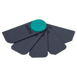 Ten 5-częściowy zestaw zapewnia odpowiedni profil promienia lub skosu dla każdej fugi. Zawieszka umożliwia rozłożenie zestawu lub wyjmowanie pojedynczych gładzików.