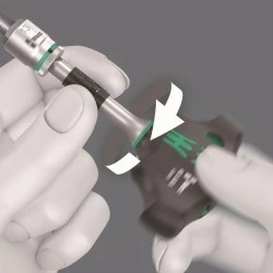 Drobnozębny mechanizm zapadkowy w rękojeści (80 zębów/kąt powrotu zapadki 4,5°) umożliwia łatwiejsze i szybsze wkręcanie bez konieczności ponownego nasadzania narzędzia.