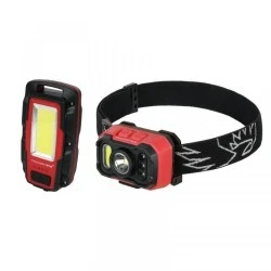 Wszechstronny zestaw oswietlenia Falcon Eye składajacy z odpornej na udary latarki czołowej oraz wielozadaniowej lampy warsztatowej.