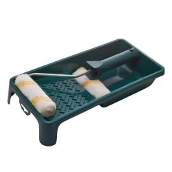 Zestaw malarski Złota nić UNIVERSAL przyda się przy rozmaitych pracach remontowych. To komplet akcesoriów przeznaczonych do malowania farbami emulsyjnymi i akrylowymi. Warto sięgnąć po niego przy poprawkach malarskich, tworzeniu dekoracji, a także renowacji. Poszczególne akcesoria są dopasowane do siebie wymiarami i funkcją, dlatego nie trzeba kupować dodatkowych narzędzi do malowania. Zestaw malarski STALCO do akryli i emulsji składa się z dwóch wałków o szerokości 100 mm. Mają uniwersalną długość runa, dlatego sprawdzą się przy pracach na każdym podłożu. Ich konstrukcja umożliwia szybkie rozprowadzanie farby i tworzy na powierzchni delikatną strukturę. Kuweta z tworzywa sztucznego ma wymiary 15 x 29 cm. Dodatkowo do kompletu dołączono funkcjonalny uchwyt malarski do mocowania wałków.