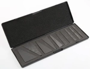 Zestaw 10-częściowy z blokadą kątową. Blok kątowy do ustawiania i sprawdzania kątów w obszarach produkcyjnych lub kontrolnych.,Każdy blok jest wykonany w zakresie od 1//4 cali. Gruba hartowana stal o długości nominalnej 3 in. dostarczana w pudełku z drewna twardego.