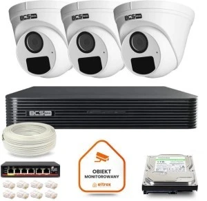 Zestaw monitoringu IP 3x kamera BCS‑B‑EIP15FR3(2.0) + rejestrator 1TB