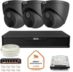 Zestaw monitoringu IP 3x kamera BCS-B-EIP15FR3(2.0) + rejestrator 1TB