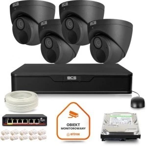 Zestaw monitoringu IP 4x kamera BCS-B-EIP12FR3(2.0) + rejestrator 1TB