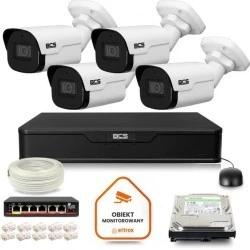 Zestaw monitoringu IP 4x kamera BCS‑P‑TIP25FSR4‑Ai2 + rejestrator 1TB